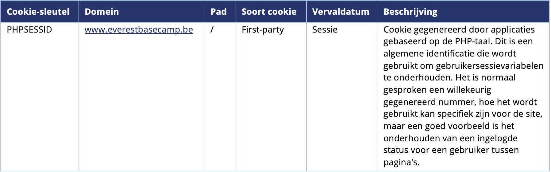 Onderstaande cookielijst geeft je een overzicht van de cookies die onze website gebruikt.
