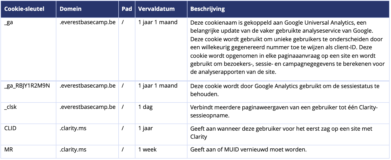 Onderstaande cookielijst geeft je een overzicht van de cookies die onze website gebruikt.